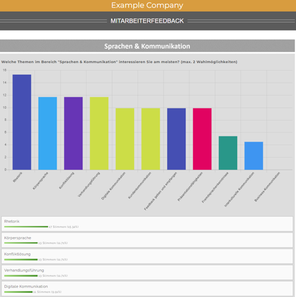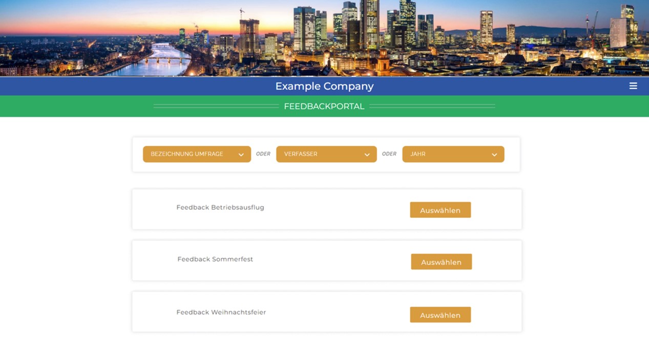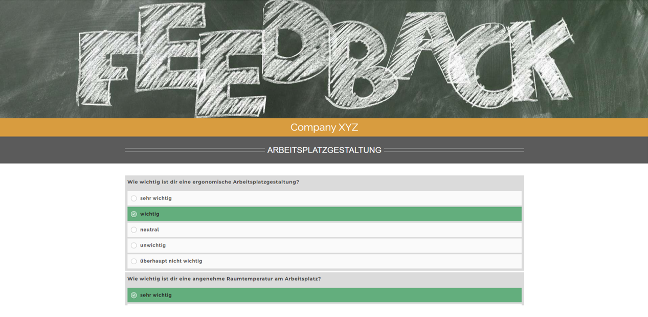Das The Eventers Feedbacktool ist das perfekte Instrument um regelmäßig Feedback Ihrer Mitarbeiter einzuholen. Erstellen sie Umfragen in wenigen Minuten und lassen Sie sich die Ergebnisse live anzeigen. Auch können sie ganz einfach aus einer Vielzahl bestehender Mitarbeiterumfragen Ihre eigenen erstellen, indem Sie sie als Vorlage verwenden und selbstverständlich bearbeiten können. Darüber hinaus können Sie in Ihrem firmeneigenen Feedbackportal sämtliche Umfragen automatisiert verwalten lassen. Einfacher, intuitiver und bequemer geht es nicht.